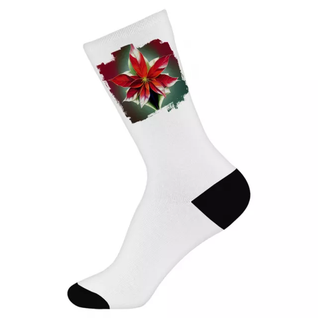 Red Flower Socks – Plant Novelty Socks – Poinsettia Crew Socks